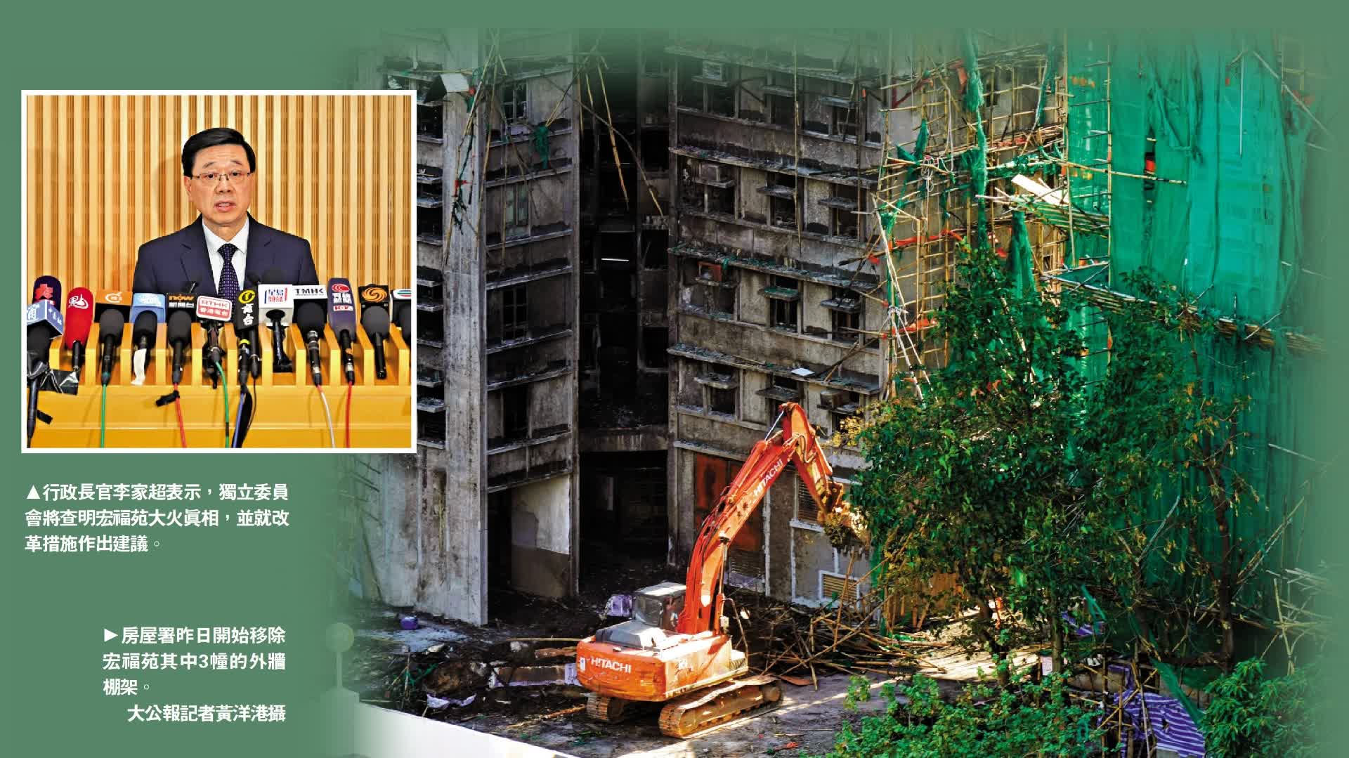 「不論涉及什麼人都要一查到底,追責到底,認真改革!」行政長官李家超昨日下午召開記者會,宣布委任陸啟康法官等三人組成獨立委員會,審視大埔宏福苑火災成因及相關維修工程是否存在違法行為,9個月內完成報告。